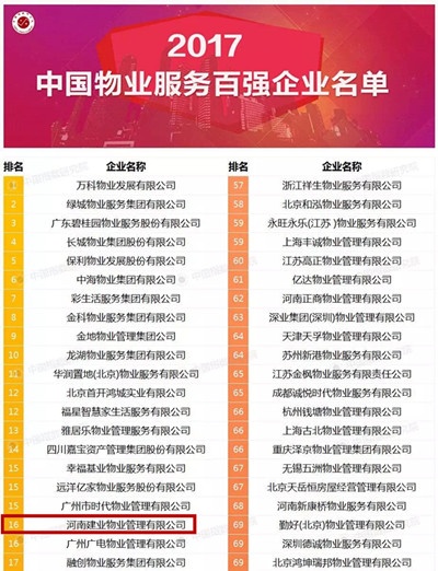 繼去年躍居中國物業(yè)管理綜合實(shí)力第16位之后,建業(yè)物業(yè)2017年再度喜獲16強(qiáng)殊榮。