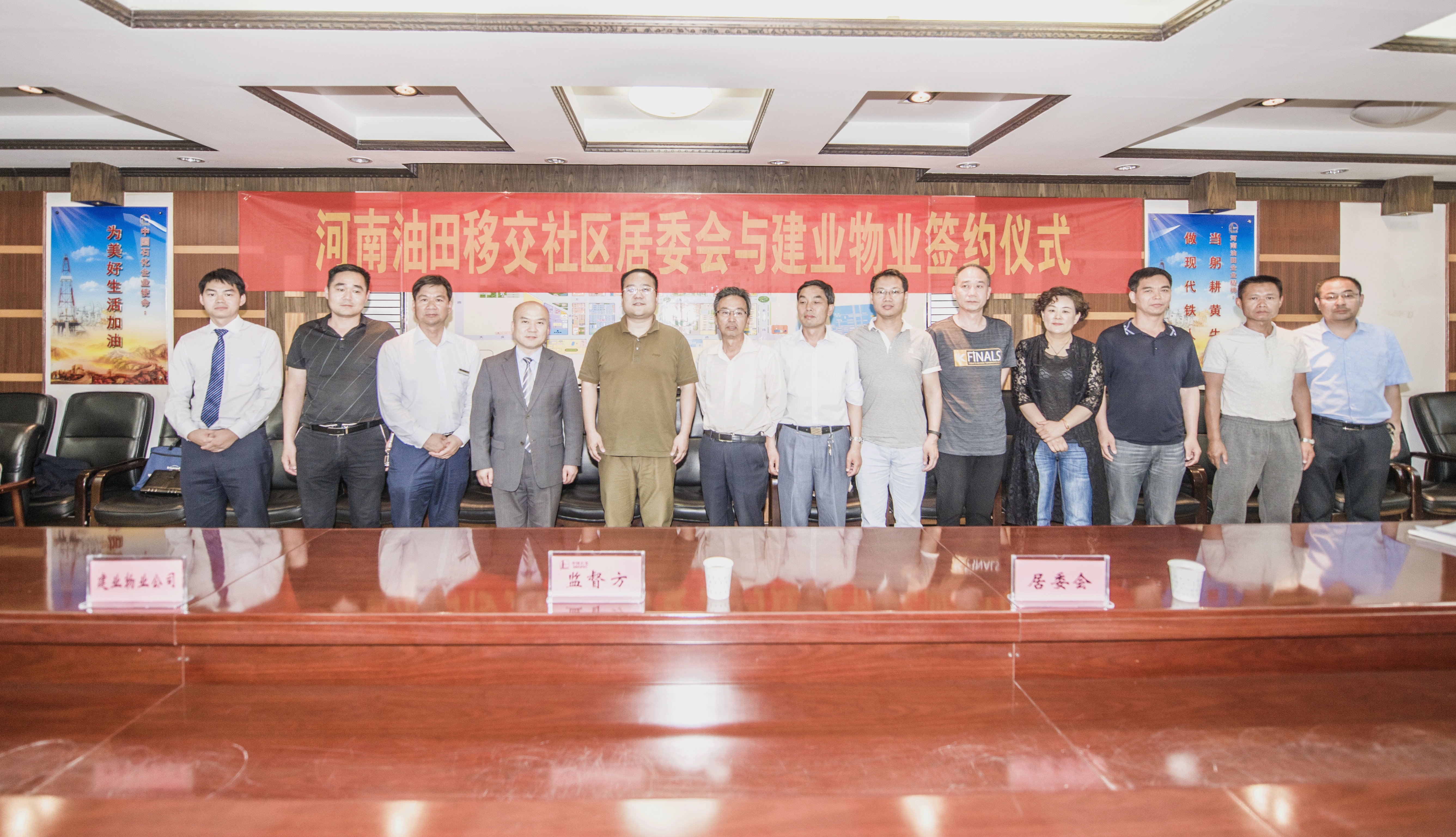 日前,河南建業(yè)物業(yè)管理有限公司與河南油田移交社區(qū)居委會(huì)合作簽約儀式在河南油田辦公司順利舉行。建業(yè)物業(yè)南陽(yáng)區(qū)域公司總經(jīng)理李正祎、南陽(yáng)官莊工區(qū)服務(wù)油田、中國(guó)石化河南分公司物業(yè)管理中心、魏崗生活區(qū)社區(qū)居委會(huì)相關(guān)領(lǐng)導(dǎo)共同出席了簽約儀式。