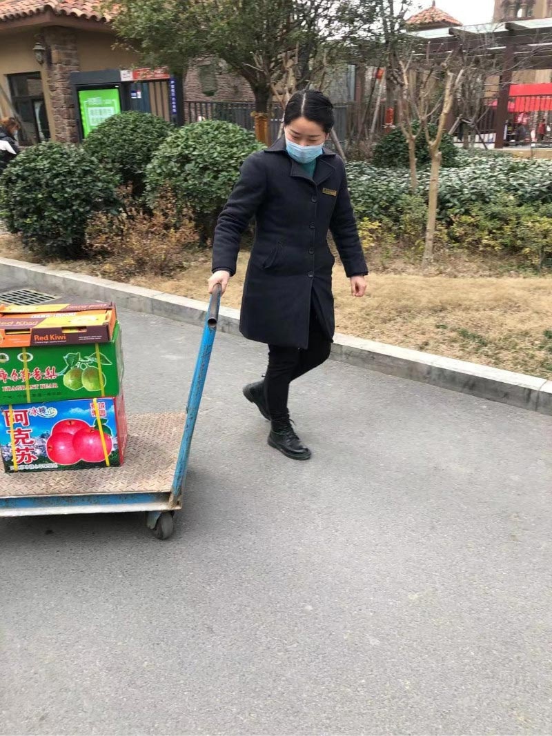 過年期間,三門峽區(qū)域的物業(yè)員工也主動承擔起為業(yè)主打水、購買日需品、送快遞的任務。因疫情原因,快遞員禁止出入小區(qū),物業(yè)服務中心的工作人員們將小區(qū)快遞收進服務中心,做好消毒,再送到業(yè)主家里。