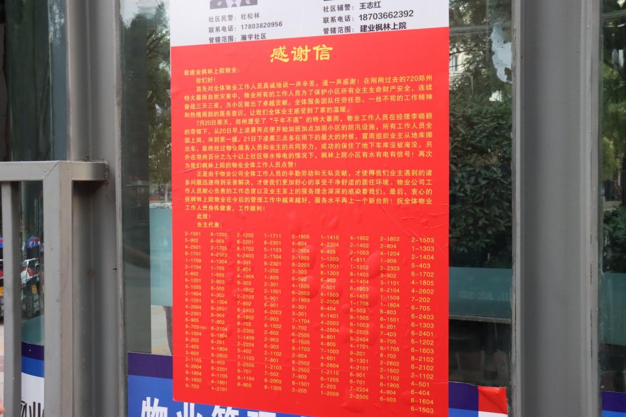 守土盡責(zé),防汛有力丨鄭州·建業(yè)楓林上院近300戶業(yè)主為物業(yè)送錦旗