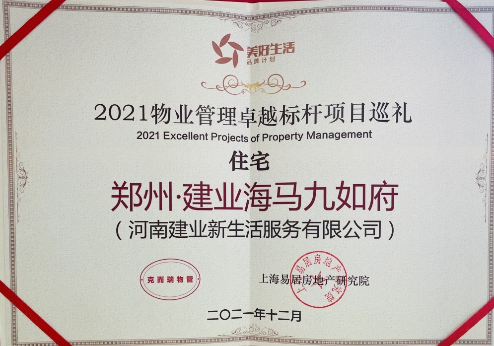 環(huán)境美、人文美、生活美、和諧美,鄭州·建業(yè)海馬九如府小區(qū)充分展示出業(yè)主樂(lè)享家門(mén)口之美的舒心、智慧生活。此次獲評(píng)全國(guó)項(xiàng)目標(biāo)桿,彰顯了建業(yè)物業(yè)良好的管理水平,起到了定標(biāo)立向、引領(lǐng)示范的作用。