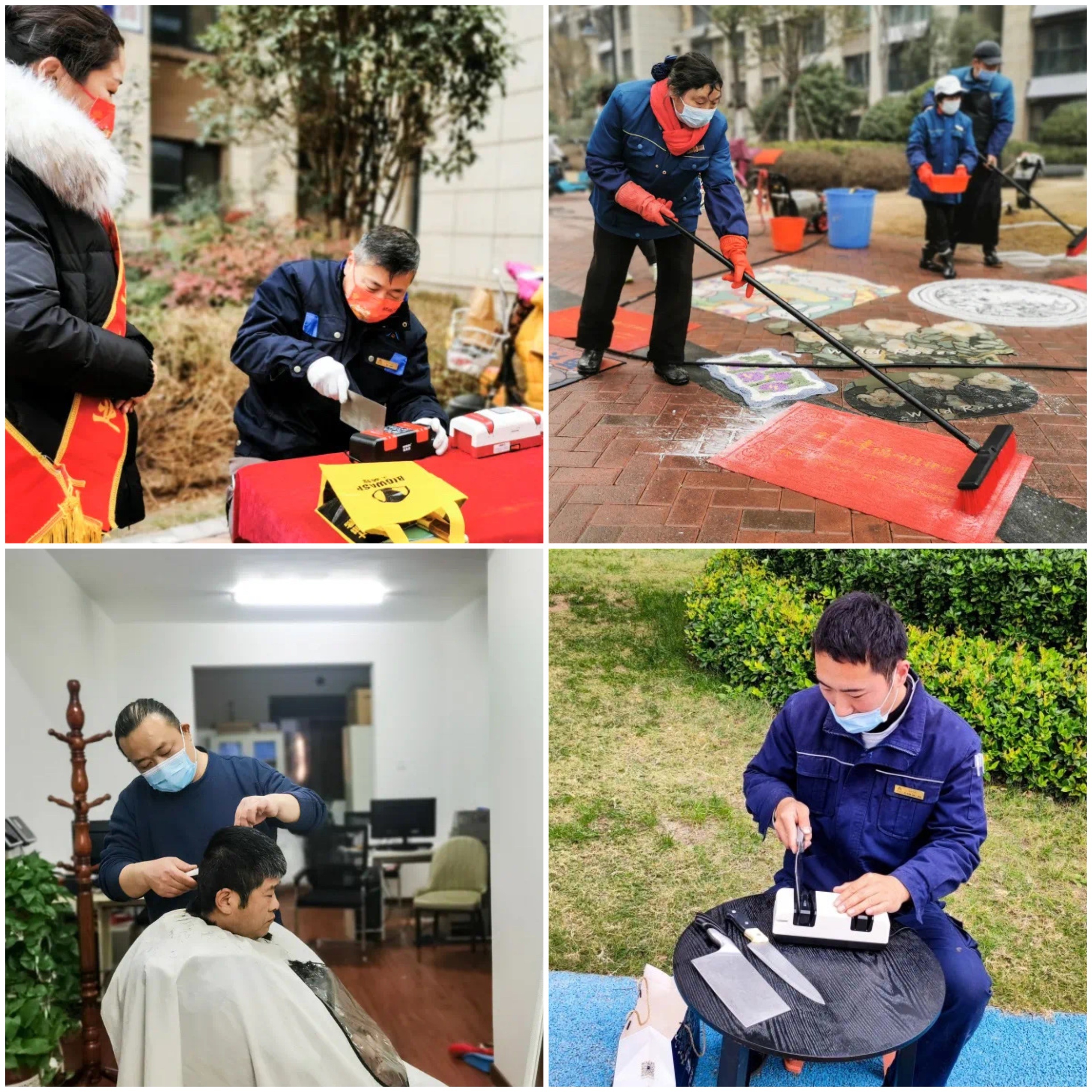 掃房子、貼窗花、祭灶,臘月的民俗活動在各個小區(qū)上演。建業(yè)物業(yè)如期開展星級便民服務(wù)活動,磨刀、洗車、洗地墊、愛心理發(fā)、義診……守護傳統(tǒng)文化,守護業(yè)主的豐年。