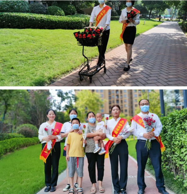 他們就將一支支玫瑰送到業(yè)主手中