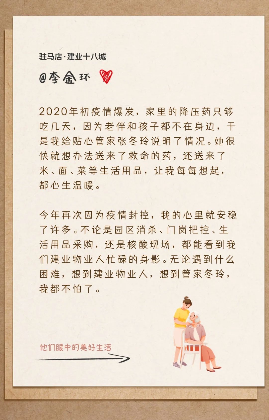建業(yè)物業(yè)竭力為業(yè)主制造一份份美好,而業(yè)主們也在用真摯懇切的情感和樸實(shí)有力的文字,一字一句地記錄著建業(yè)物業(yè)人的付出,表達(dá)著自己內(nèi)心的感動(dòng)和認(rèn)可。