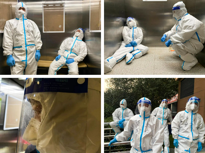 在封控的這段時(shí)間里,她每天都要走超過40000步。每天早上5點(diǎn)多,劉嬌嬌就要起床準(zhǔn)備,開始協(xié)同醫(yī)護(hù)人員進(jìn)行入戶核酸檢測,與此同時(shí),細(xì)心的她還主動詢問每戶業(yè)主的服務(wù)需求。樓道消殺、物資配送……忙完這些,稍作休息,她還要再逐戶清收生活垃圾,等拖著一身的疲憊躺在辦公室的地鋪上時(shí),往往已是午夜。