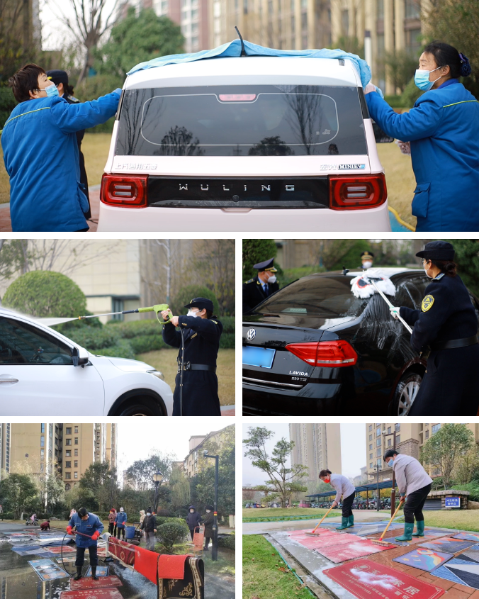 在高壓水槍的沖刷下,一塊塊地墊地毯,一輛輛汽車煥然一新。解壓的場(chǎng)景也讓人的心情變得好了起來(lái),去污除垢,擺脫晦氣,迎接一個(gè)嶄新的新年。