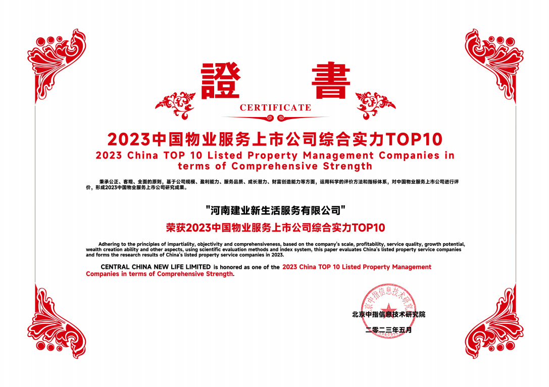 建業(yè)新生活榮膺“2023中國物業(yè)服務上市公司綜合實力TOP10”!