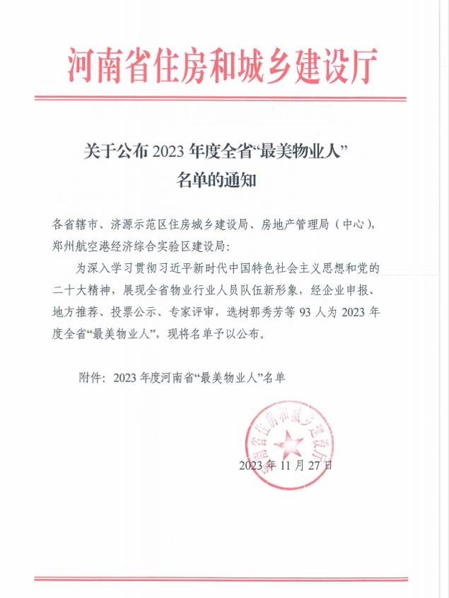 11月27日,河南省住房和城鄉(xiāng)建設(shè)廳發(fā)布了2023年度全省“最美物業(yè)人”名單,經(jīng)過專家評審,建業(yè)新生活周口城市公司姚錦超、駐馬店城市公司禹宗超、焦作城市公司孫福生三人入選該榜單。 以服務(wù)贏得尊重,讓團隊獲得價值 建業(yè)新生活周口城市公司 姚錦超 從2007年加入建業(yè),在16年的磨礪中,姚錦超從貼心管家做起,以扎實的業(yè)務(wù)知識和優(yōu)秀的業(yè)務(wù)水平,帶領(lǐng)團隊不斷奮進。 在員工的眼里,姚錦超是一名“奉獻型”管理者,他的辦公室里一直備著一張簡易折疊床,工作忙到深夜時,他便在這里湊合一宿。2018年8月17日,周口市區(qū)突降暴雨,引起城市內(nèi)澇,正在外地的姚錦超立刻輾轉(zhuǎn)10余小時趕回周口·建業(yè)森林半島小區(qū)。雖然小區(qū)已第一時間啟動應(yīng)急預(yù)案,但由